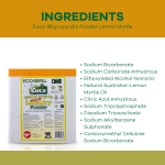 Ingredients: Sodium Bicarbonate, Sodium Carbonate, Ethoxylated Alcohol Nonionic, Natural Australian Lemon Myrtle Oil, tetra Sodium Salt, Sodium Tripolyphosphate, Disodium Trioxosilicate, Sodium Alkylbenzene Sulphonate.